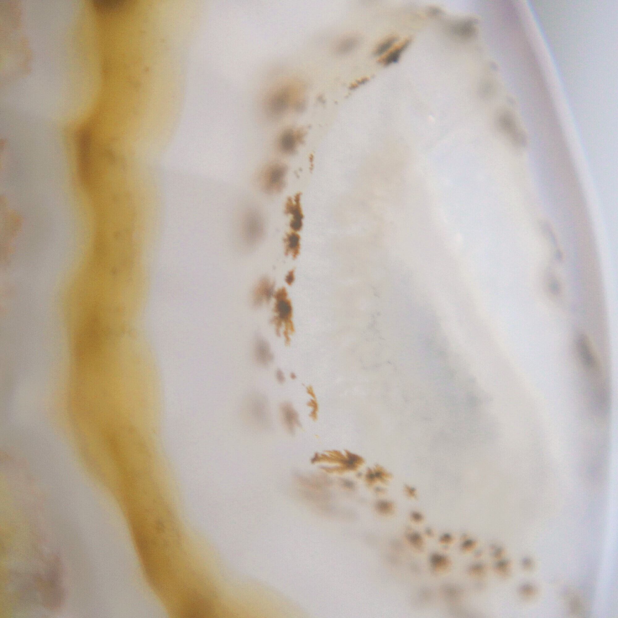 ✧瑪瑙の濃い色は染色によるもので、水に濡れた布で擦ると多少色落ちしますが、汚れが気になる時は若干の色落ち前提で水を軽く含ませた布やティッシュでやさしく拭いていただくことは大丈夫です。また、画像のような細かなヒビ・カケはスライスメノウの加工上避けられないことが多く、チャイムとしての機能や全体の外観を著しく損なうものを除き、見た目の完璧さ<音色の響きや石のもつ美しさ重視で選んで使用しております✧