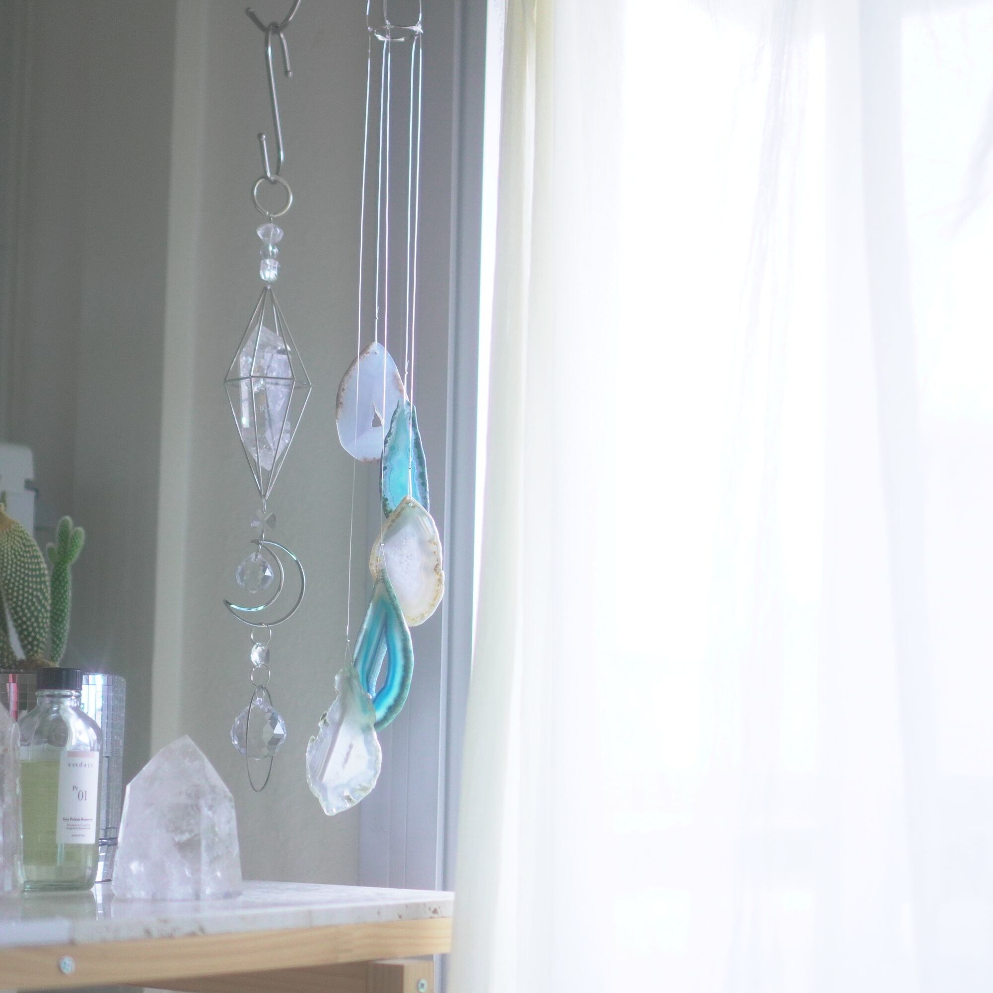 そしてカーテン越しではなく直射日光を当てた際のサンキャッチャーとしてのチャイムも、ピカピカとした美しい光をお部屋の中に運んでくれます。
