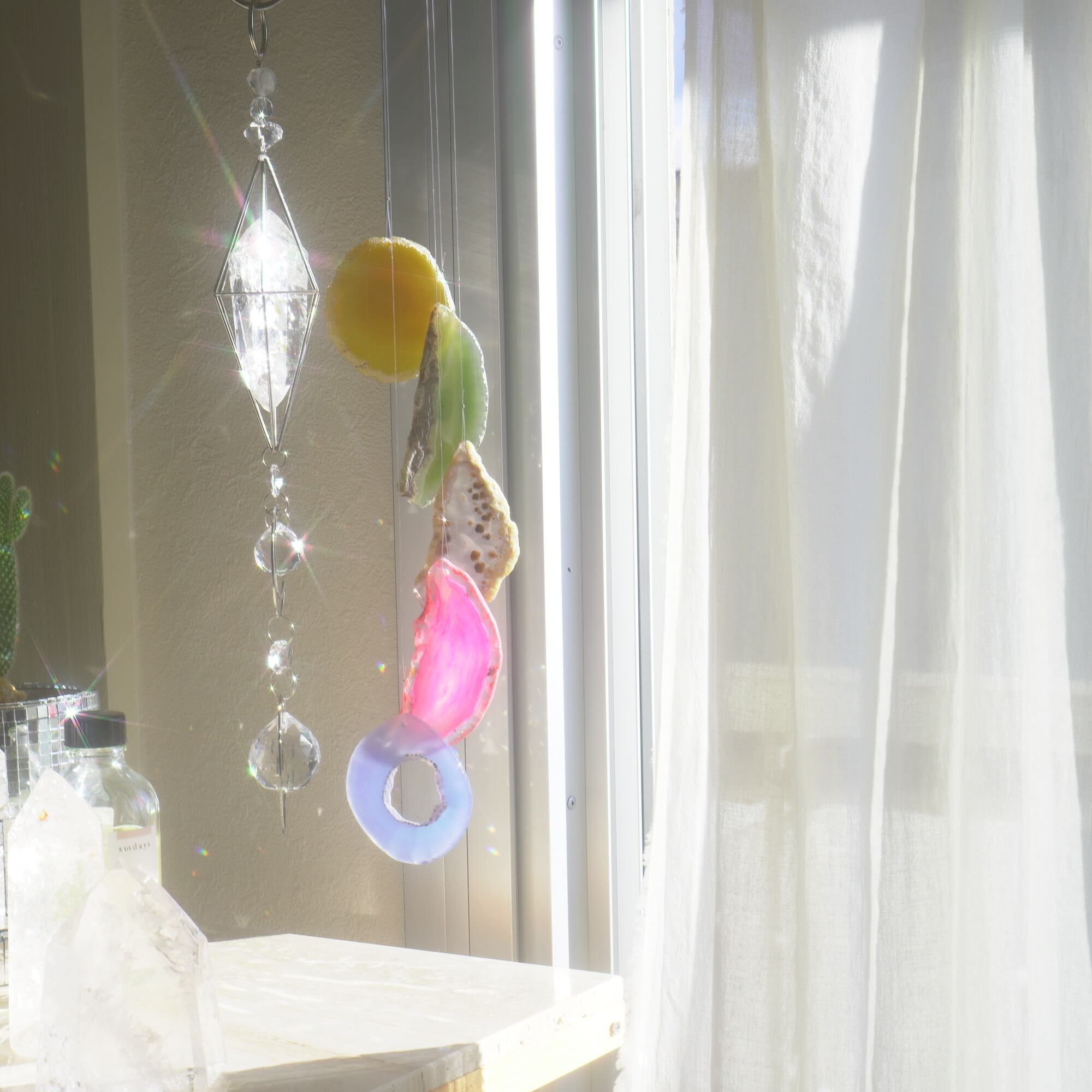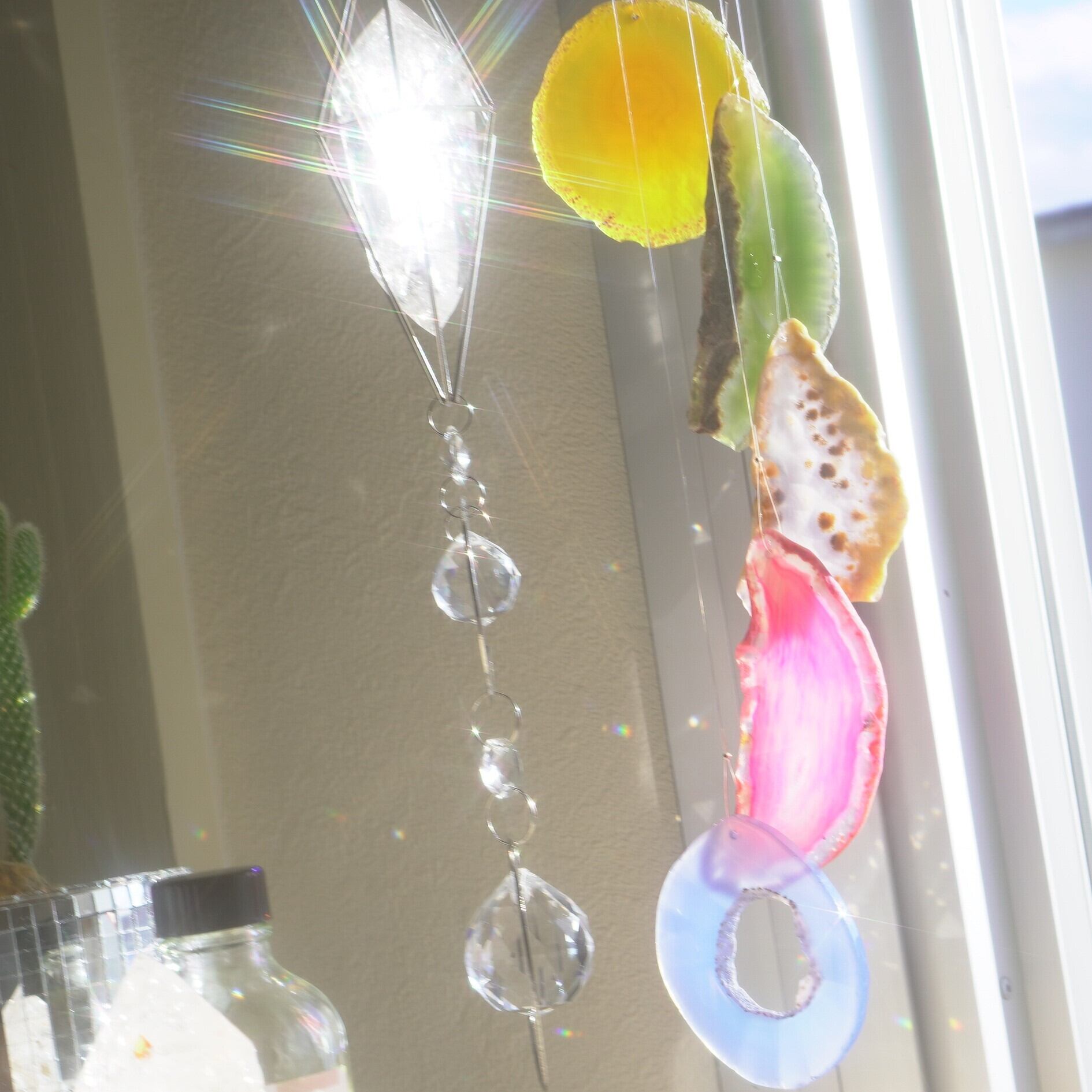 そしてカーテン越しではなく直射日光を当てた際のサンキャッチャーとしてのチャイムも、ピカピカとした美しい光をお部屋の中に運んでくれます。