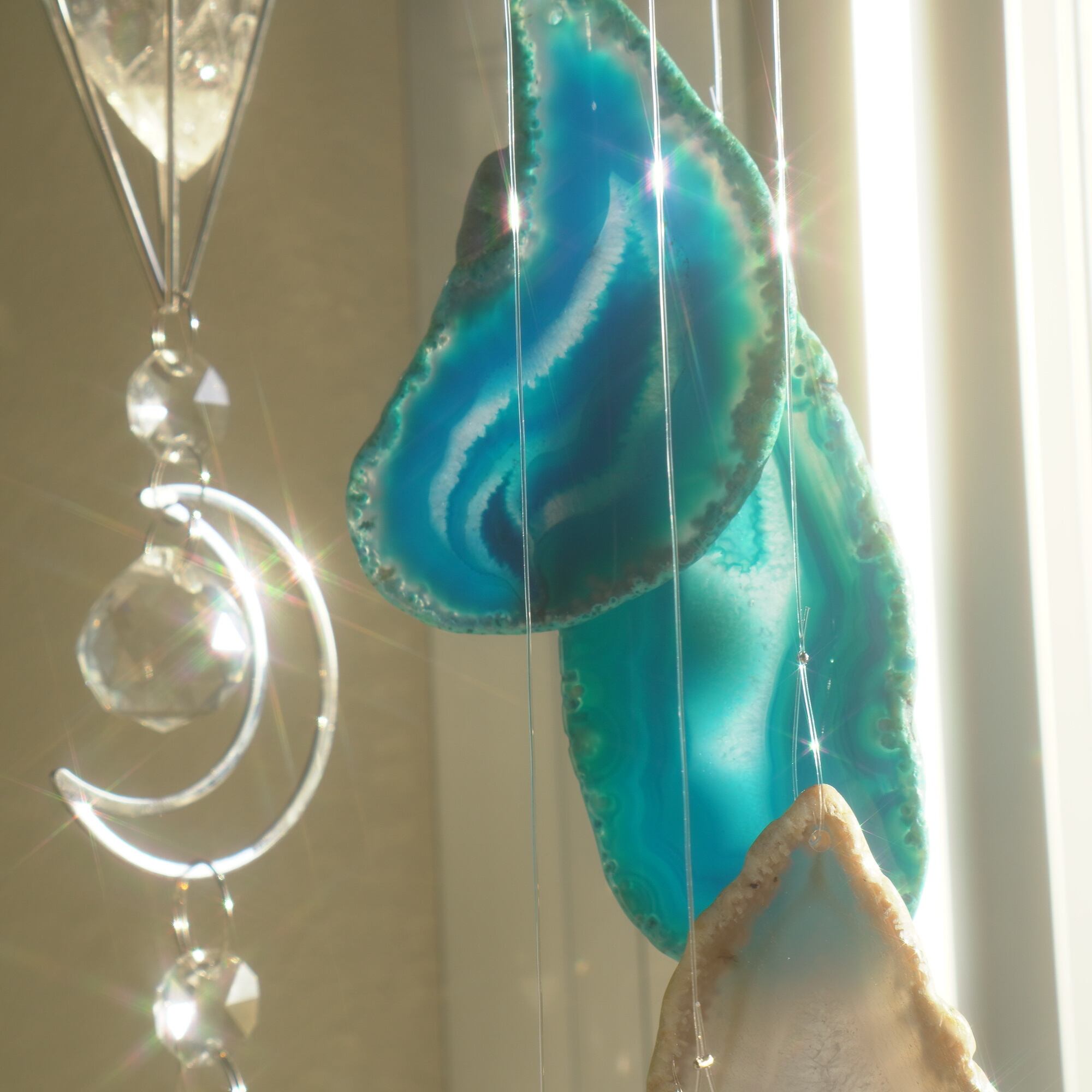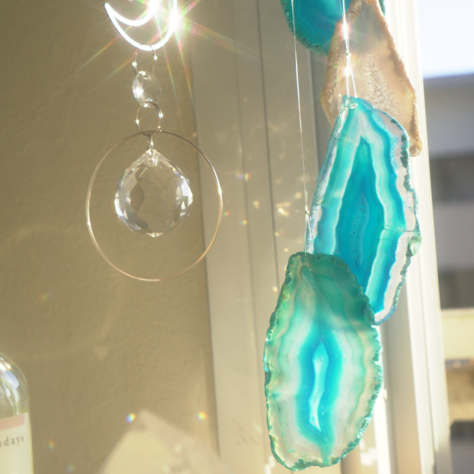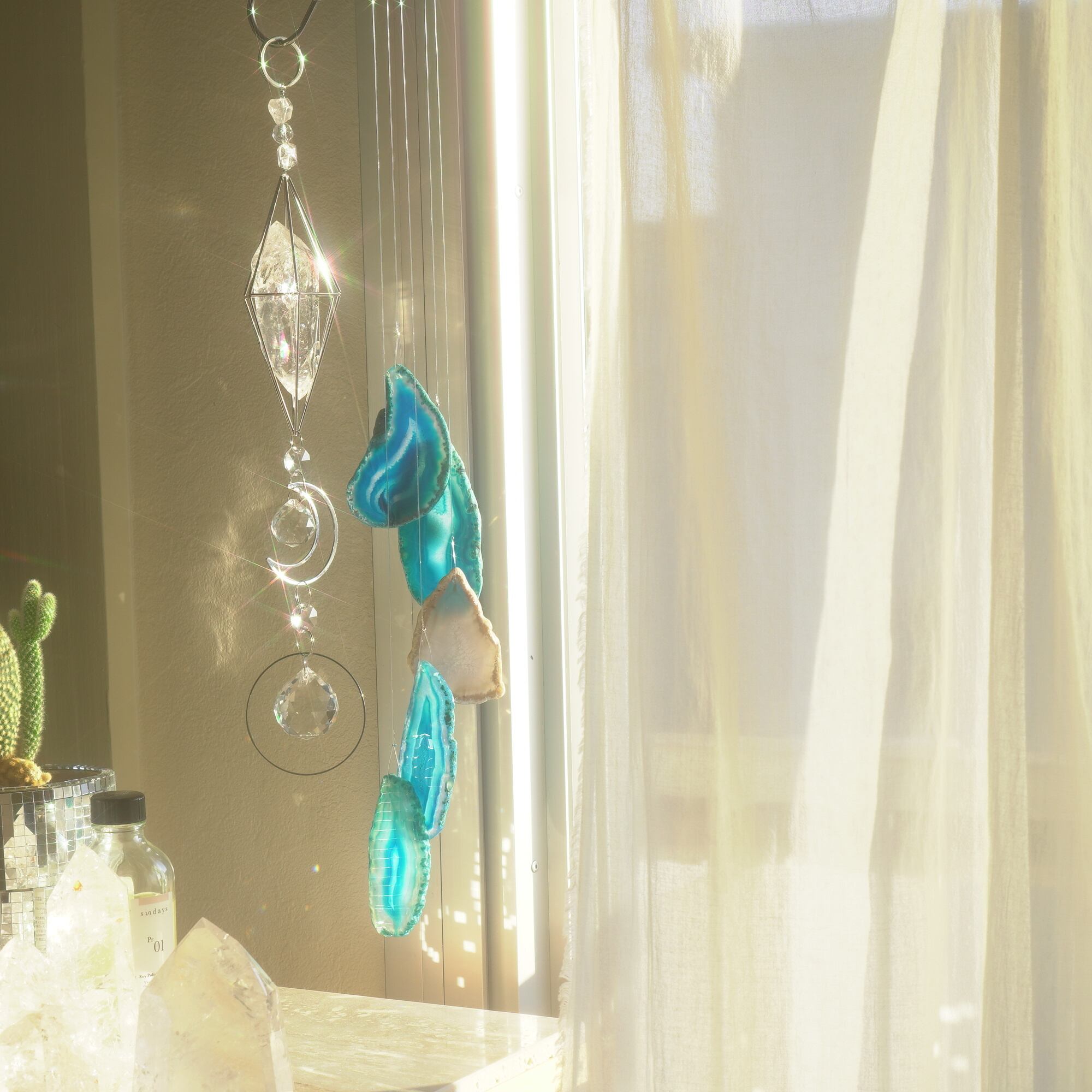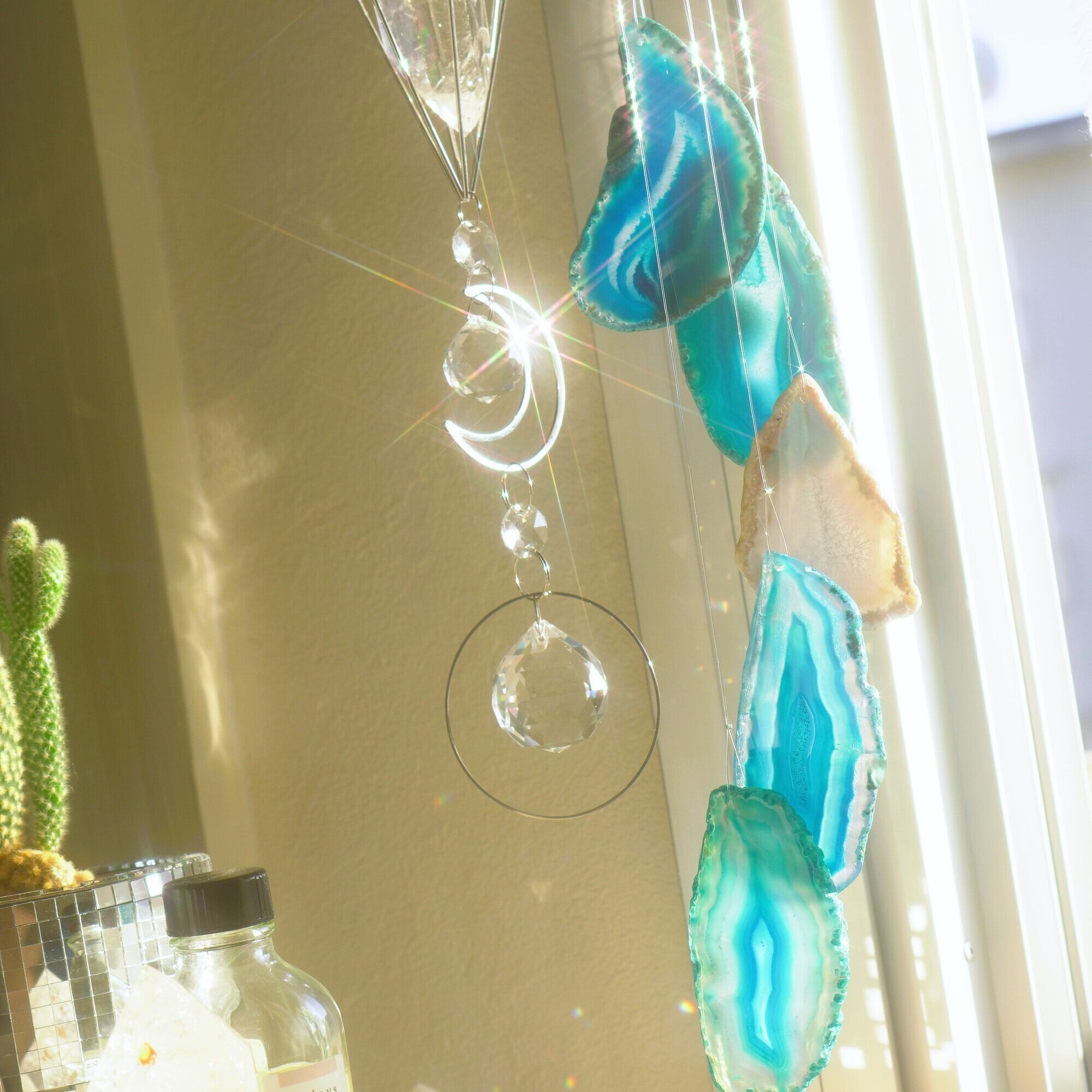 そしてカーテン越しではなく直射日光を当てた際のサンキャッチャーとしてのチャイムも、ピカピカとした美しい光をお部屋の中に運んでくれます。