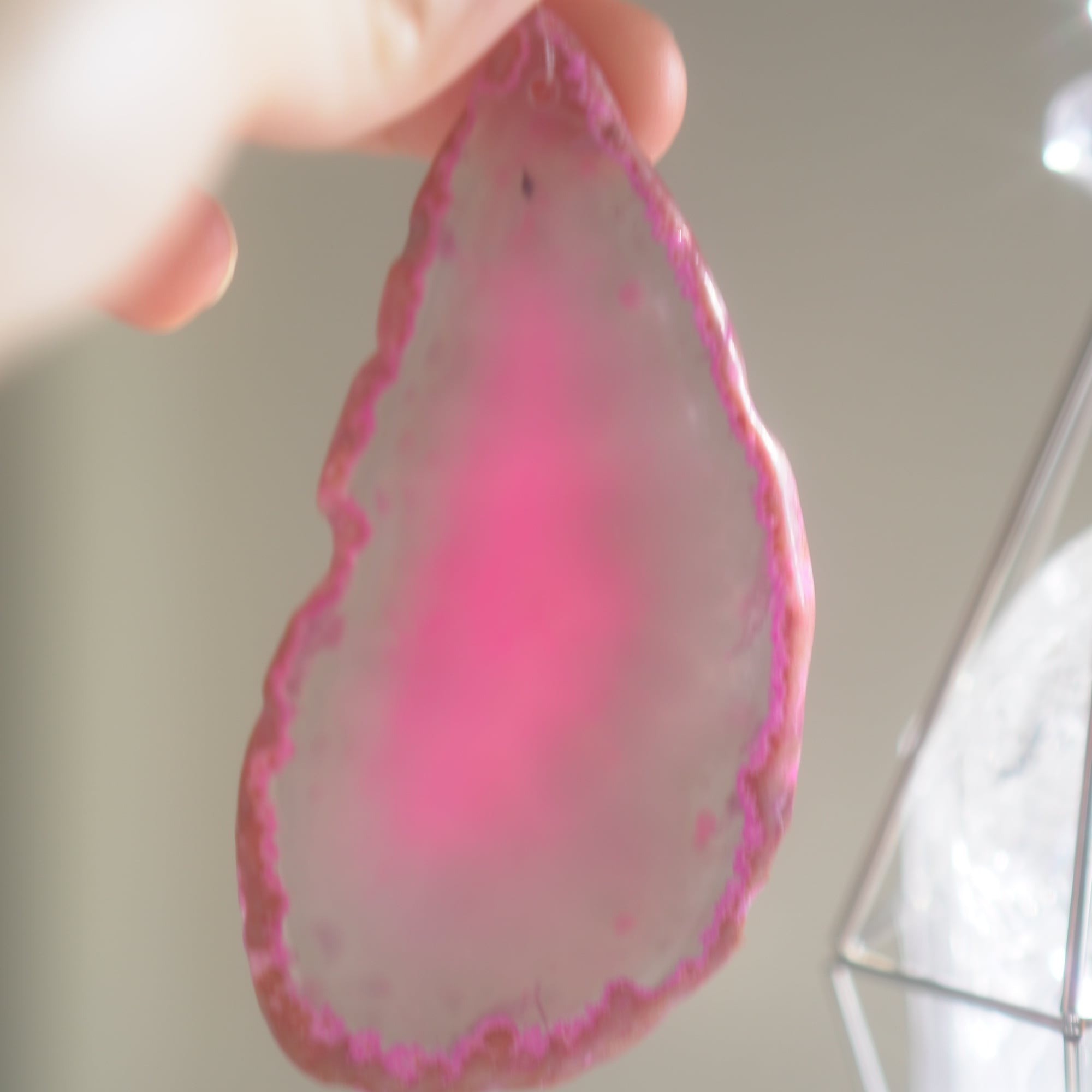 ✧染色の石なので耐光性(光による経年でのカラー変化の耐性)に優れているわけではなくベランダなど一日の中で長時間強い日光に当たるような場所に飾られるのはおすすめしないのですが、陽光に透かした時にだけ真価を発揮する美しさがありますので、是非、時折翳したりして光と一緒にお楽しみいただけたらと思います。特に濃い鮮やかな色など、色変化が気になられる場合は、日光のあまり当たらない場所に飾ってくださいね✧