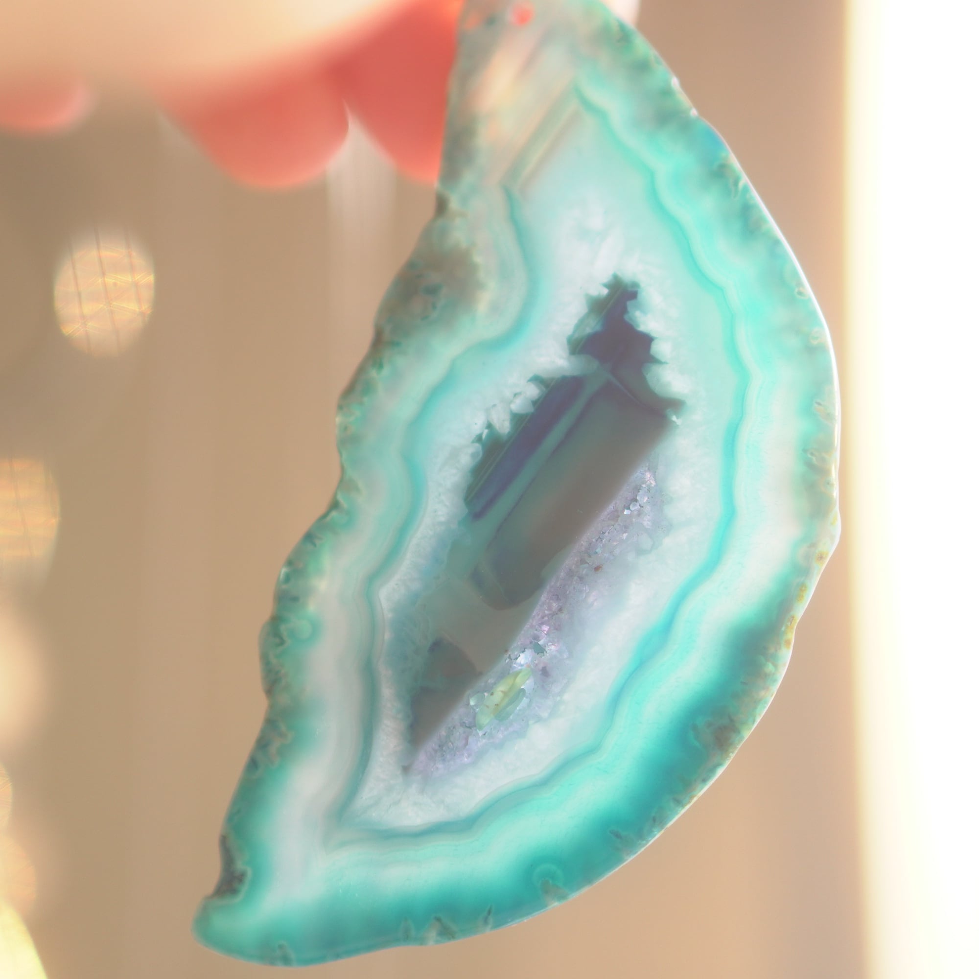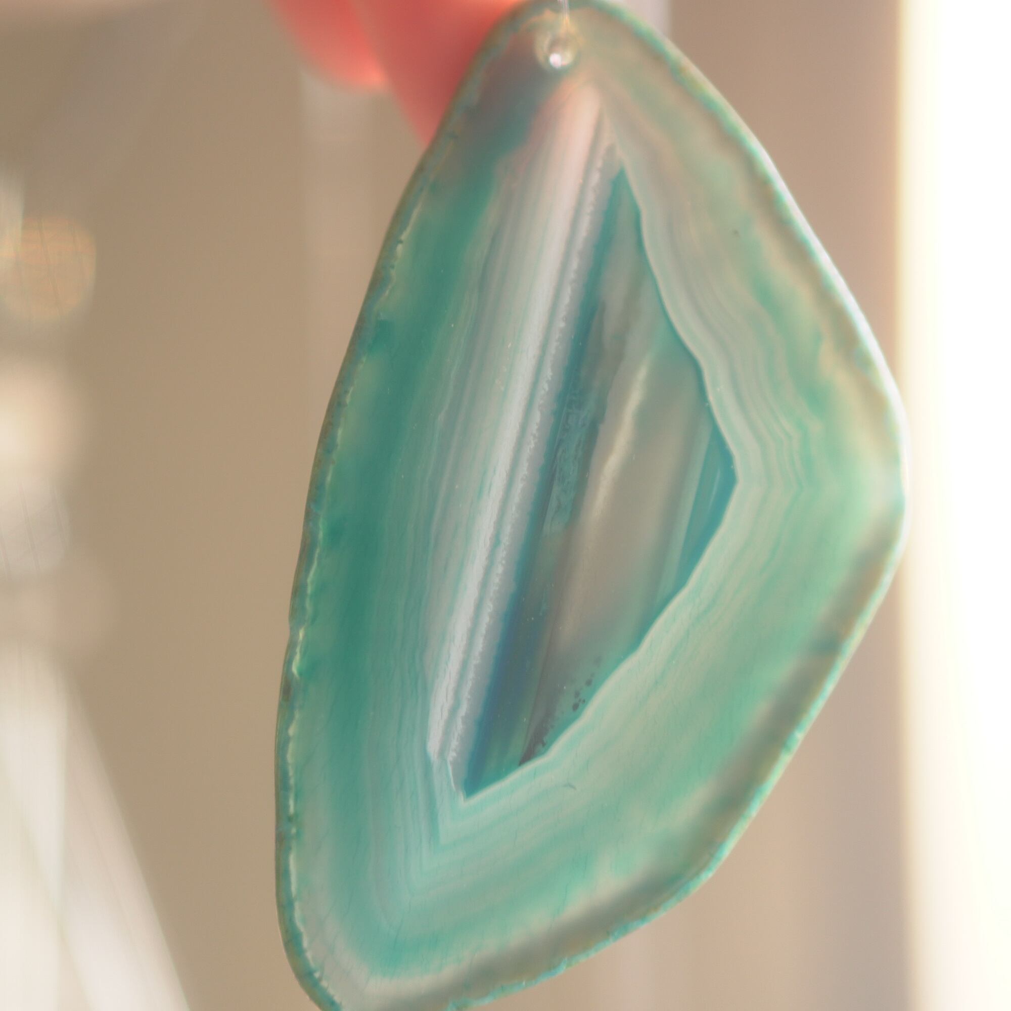✧染色の石なので耐光性(光による経年でのカラー変化の耐性)に優れているわけではなくベランダなど一日の中で長時間強い日光に当たるような場所に飾られるのはおすすめしないのですが、陽光に透かした時にだけ真価を発揮する美しさがありますので、是非、時折翳したりして光と一緒にお楽しみいただけたらと思います。特に濃い鮮やかな色など、色変化が気になられる場合は、日光のあまり当たらない場所に飾ってくださいね✧