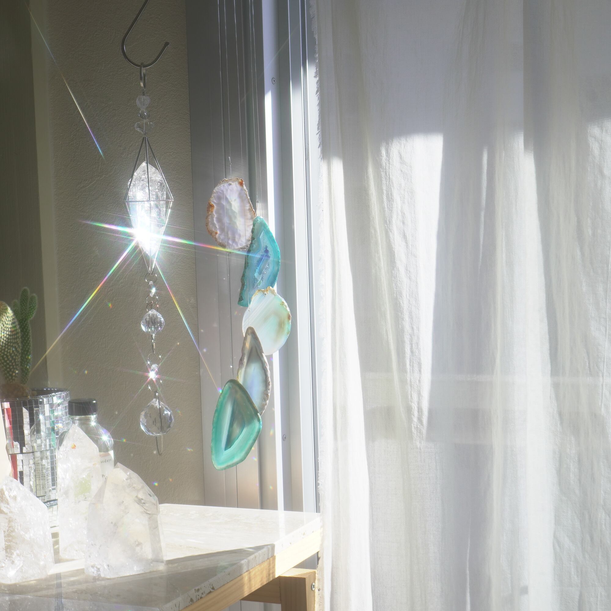 そしてカーテン越しではなく直射日光を当てた際のサンキャッチャーとしてのチャイムも、ピカピカとした美しい光をお部屋の中に運んでくれます。