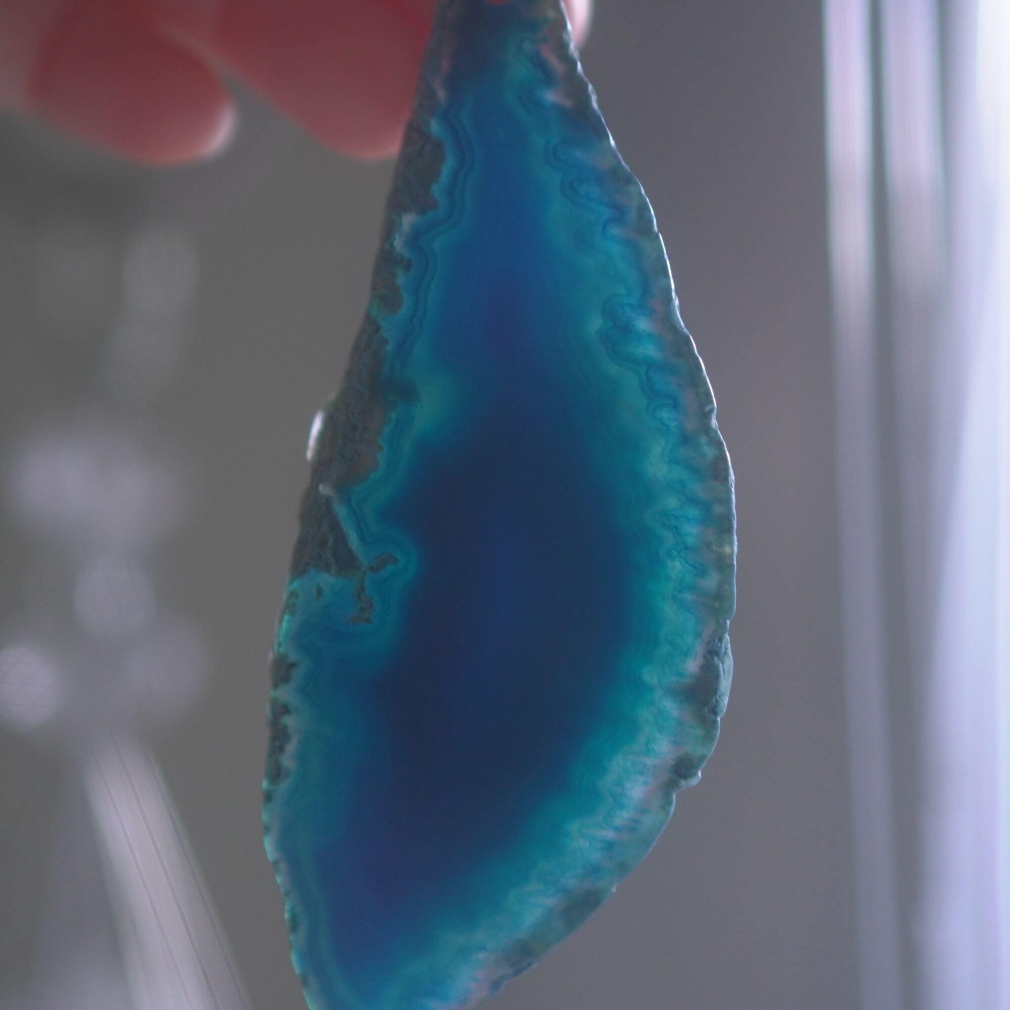 ✧染色の石なので耐光性(光による経年でのカラー変化の耐性)に優れているわけではなくベランダなど一日の中で長時間強い日光に当たるような場所に飾られるのはおすすめしないのですが、陽光に透かした時にだけ真価を発揮する美しさがありますので、是非、時折翳したりして光と一緒にお楽しみいただけたらと思います。特に濃い鮮やかな色など、色変化が気になられる場合は、日光のあまり当たらない場所に飾ってくださいね✧