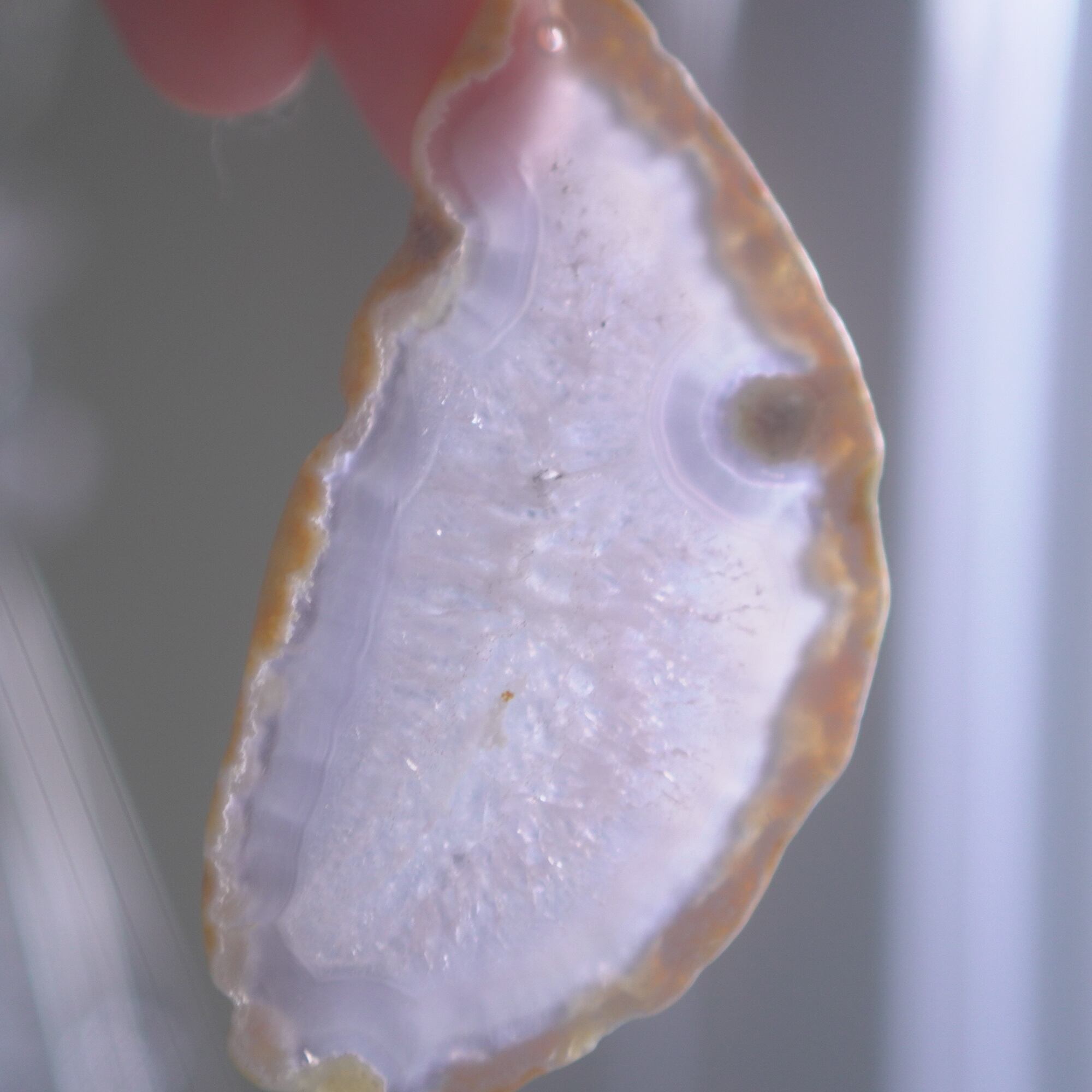 重ねる石同士の側面の加工状態によっても良い音が鳴ったり鳴らなかったり、石の見た目だけで組み合わせを決められないことが難しいポイントでもあるのですが、そんな中、たくさんの石の中から選ばれた5枚のスライスアゲートから出来上がったチャイムたちは、どこか悠々自適に空を泳ぐ妖精のようでもあり、それぞれの音を楽しそうに奏でてくれます。