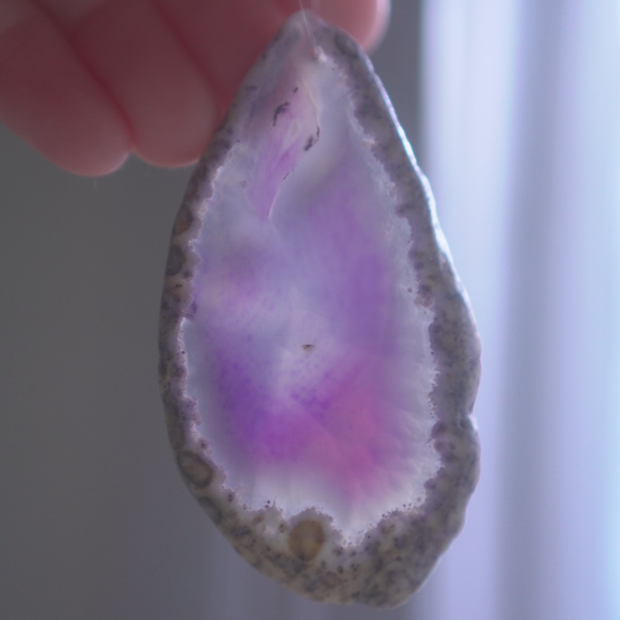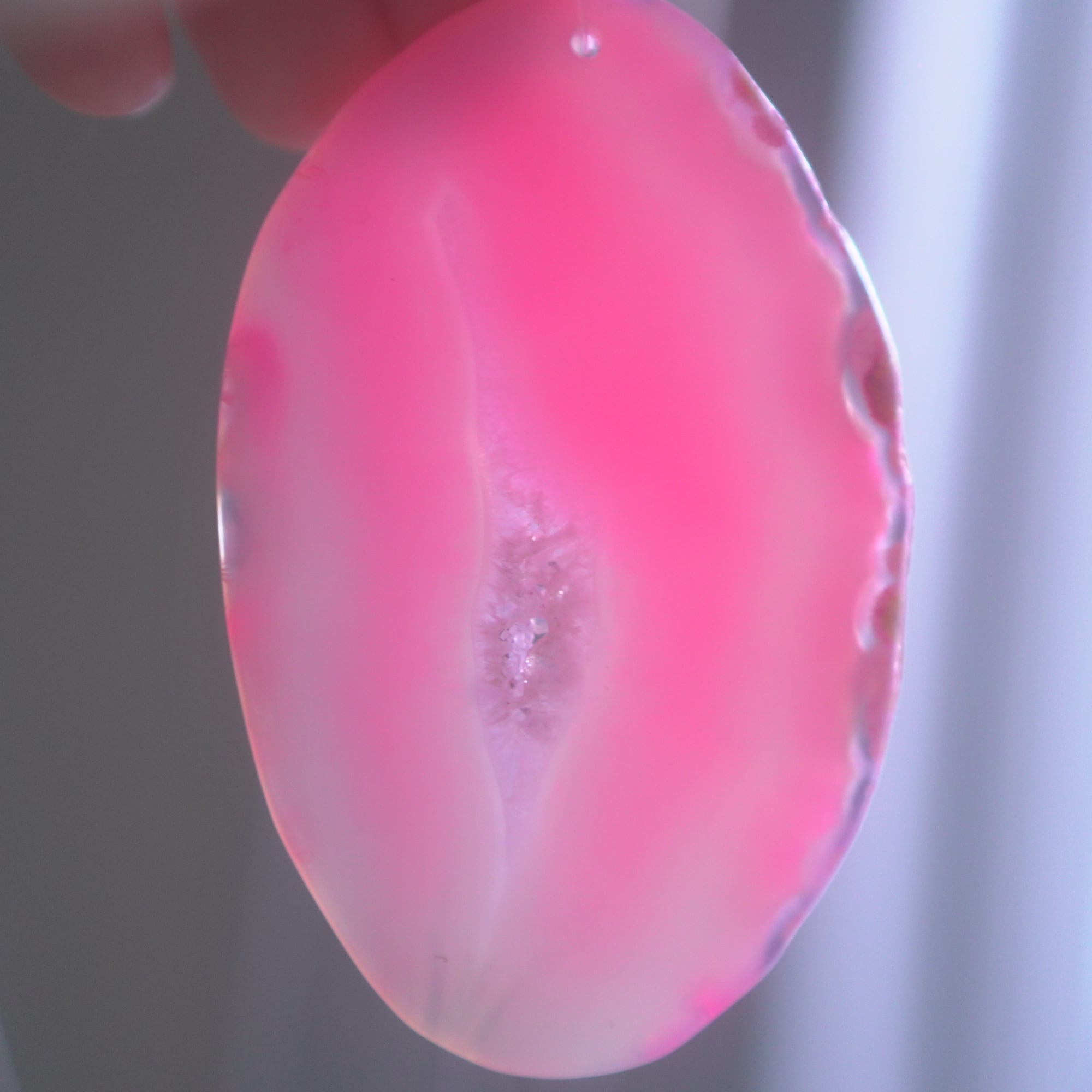 ✧染色の石なので耐光性(光による経年でのカラー変化の耐性)に優れているわけではなくベランダなど一日の中で長時間強い日光に当たるような場所に飾られるのはおすすめしないのですが、陽光に透かした時にだけ真価を発揮する美しさがありますので、是非、時折翳したりして光と一緒にお楽しみいただけたらと思います。特に濃い鮮やかな色など、色変化が気になられる場合は、日光のあまり当たらない場所に飾ってくださいね✧
